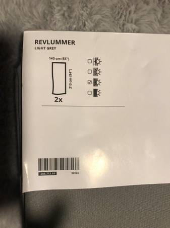 Brand New pair of Light Grey Ikea "Revlummer" 1 pair of Curtains 55"X 84", Contains of 2 Panels, The eyelet heading allows you to hang the curtains directly on a curtain rod.the Curtains lower the general light level and provide privacy by preventing people outside from seeing directly into the room. 100% Polyester, Style# 205.713.86 ,Great Deal