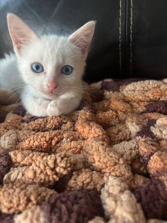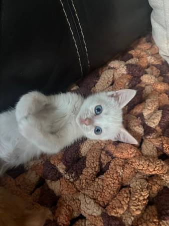 Kitten 2 mths old white kittens blue eyes text for details