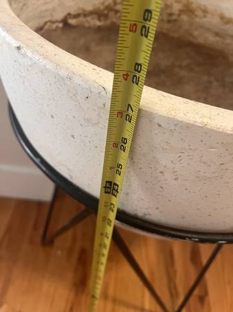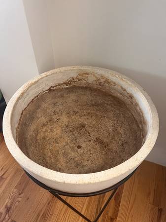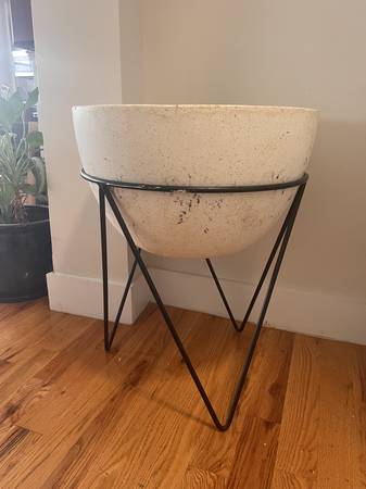 Very nice, white, planter on stand. Needs a good scrubbing, which I started but don't have the energy to finish. You'll need to come pick it up from my apartment (2 flights of stairs)