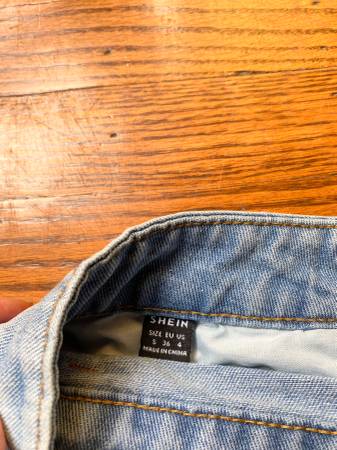 Brand: Shein Size: S, US 4 Color: Light wash Condition: Good Style: Short Denim Skirt, Miniskirt Measurements: Length - 12 in.