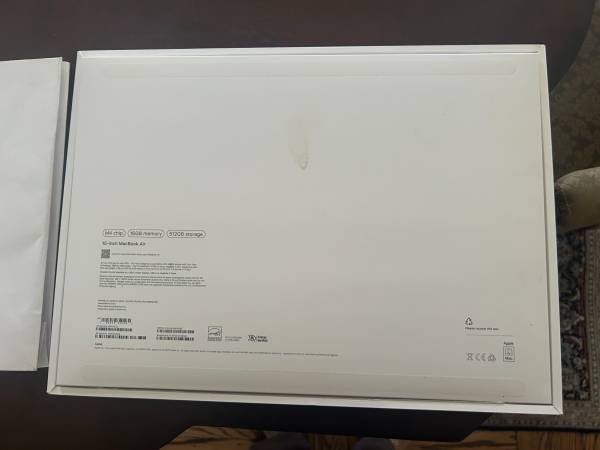 The box from a 2025 MacBook Air Comes with brand-new Apple bag. M4 chip; 512 GB storage; 16 GB memory location: Fort Greene