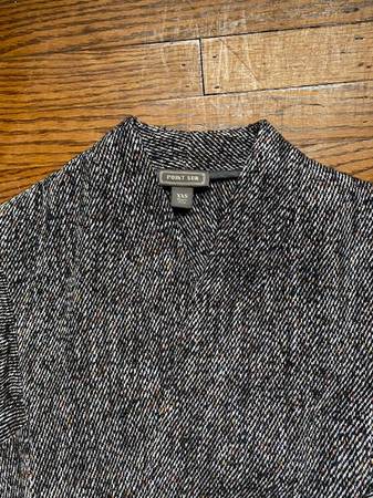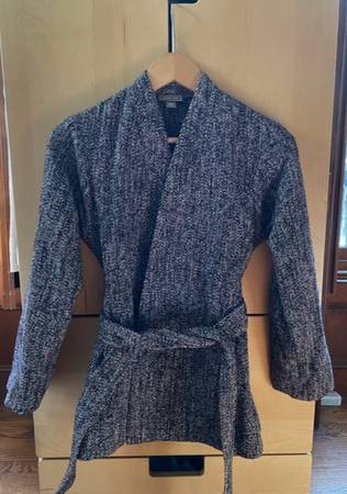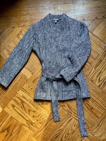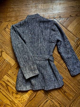 Kimono-style tweed blazer with belt. Can be dressed up or down. Size: XXS Style: Classic, minimalist Color: Gray Tweed Condition: New Measurements: Sleeve - approx. 21 in. Length - approx. 28 in....