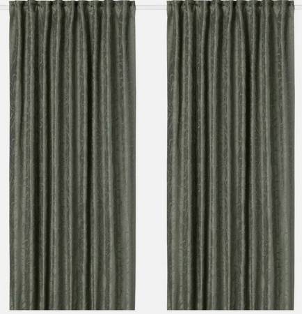 NEW Ikea Fritse Curtains Drapes 2 Panels Dark Green Embossed Floral...