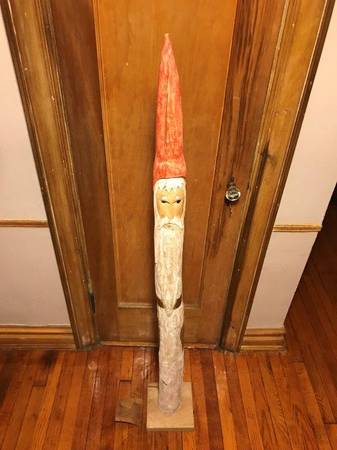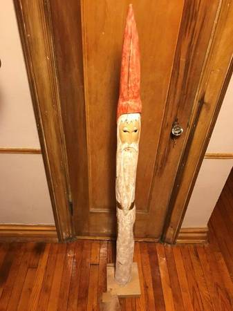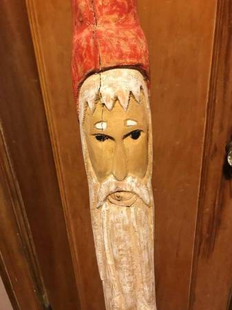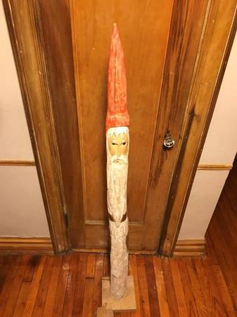 Original Wooden Hand Carved and Hand Painted “Heirloom Collection” 5 Foot Santa, Each piece from the Heirloom Collection has been uniquely crafted and carved by Heirloom Artist from the Highest quality wood. Beautifully imperfect cracks and chips make this piece truly one-of-a-kind. Its Character and charm will be a wonderful addition anywhere in your home. Measures: 60”Height x 5”Wide. Base measures: 8" x 8". Unique Gift, Beautiful Colors.