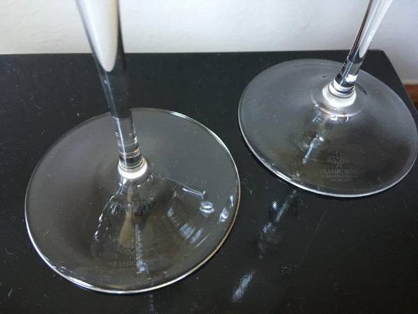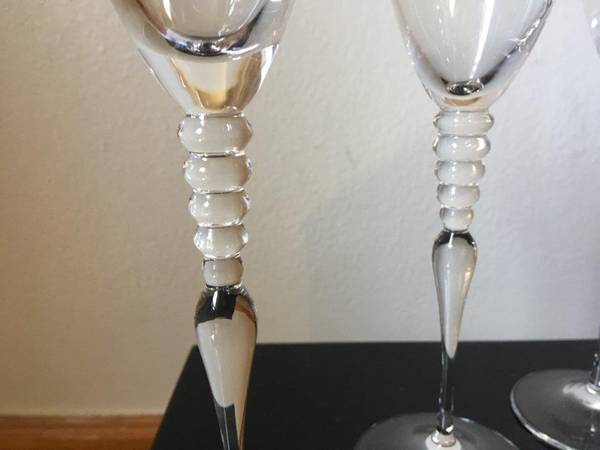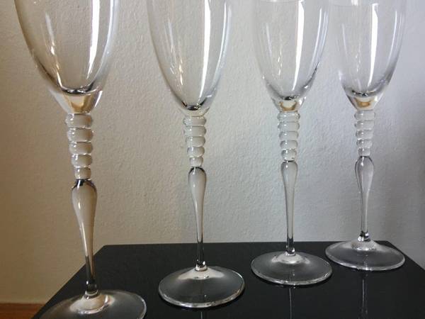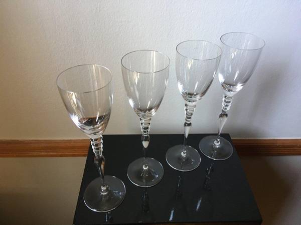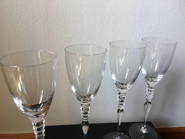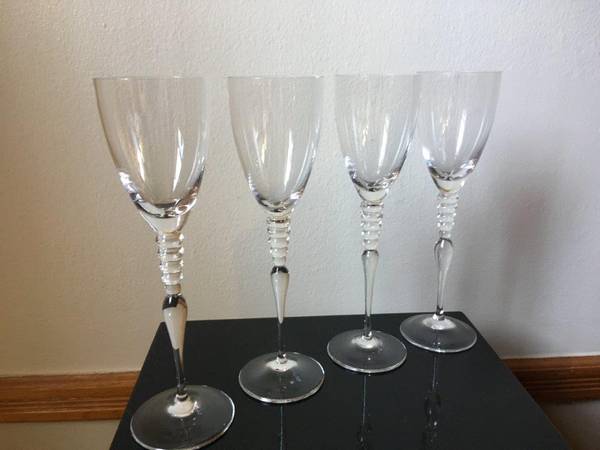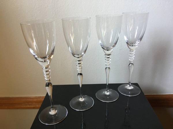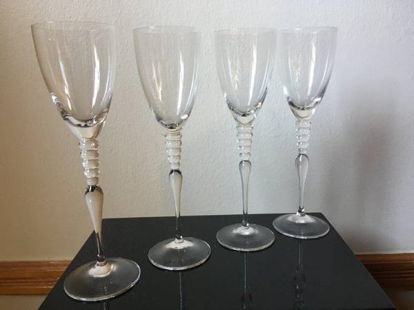 Rosenthal Classic Rose "Imago" Clear Crystal Wine Glasses "Set of 4", Measures: 9 1/4" Tall, This avant-garde and sophisticated designed Crystal glass has 5 Crystal circles around the stem, Made in Germany. The Crystal Glasses are in Excellent condition New/Never used [stored in my closet for years]. The Glasses are signed "Classic Rose Rosenthal Group Germany" on the bottom with an acid stamp. No Gift-box, these Crystal Glasses were Manufactured from 1996 until 2009, this Crystal glasses are very Rare and Collectible