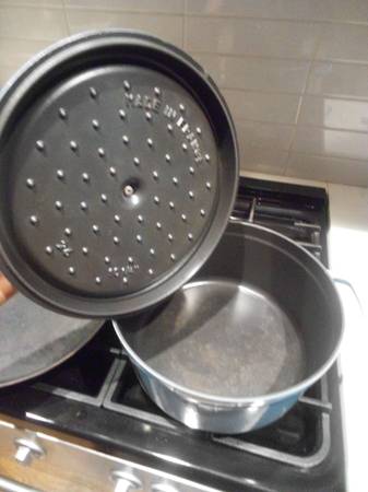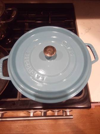 High quality, made in France, ordered off Sur la Table, used by one person, Staub dutch over, 6qt. Makes food great, taste great and cook very well. French blue color. I can deliver if you purchase...