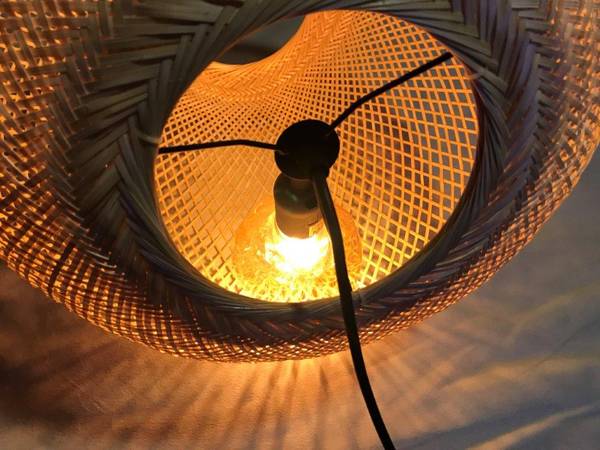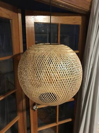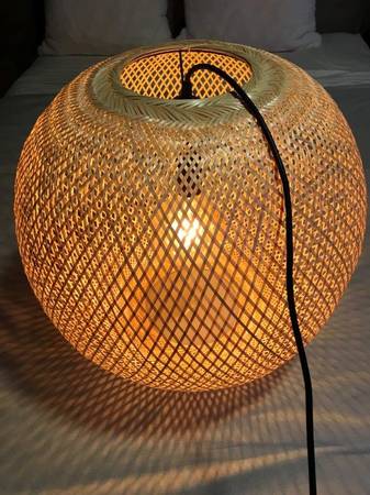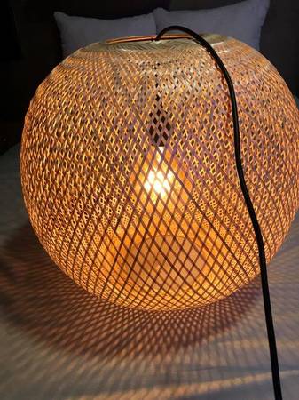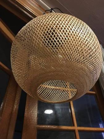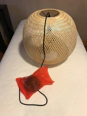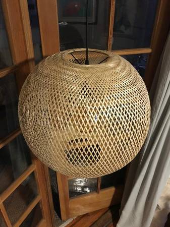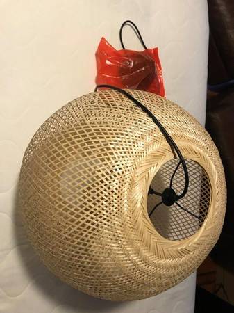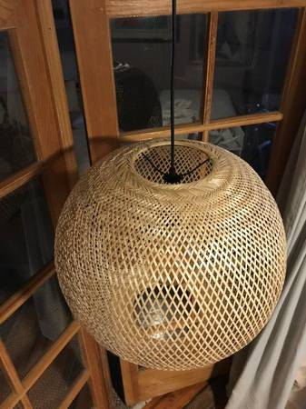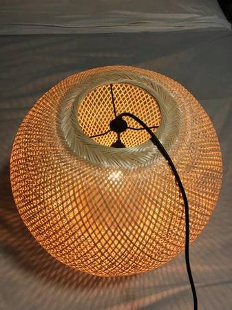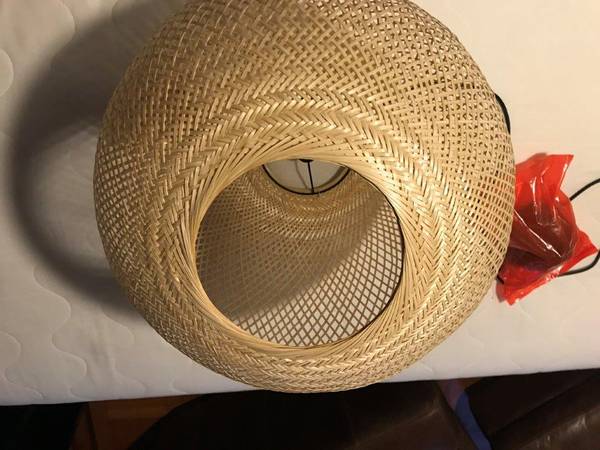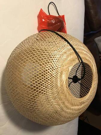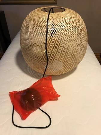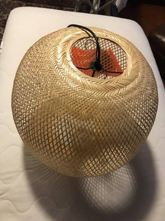 Brand New "Vindoga" handmade Bamboo Pendant lamp, this lamp shade gives a glowing light that creates a warm atmosphere , great anywhere in your home, Light bulb included, measures: 20"Diameter x 18" Height, Cord length 5'3", shade : Bamboo, clear lacquer. Great Deal.