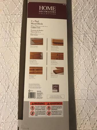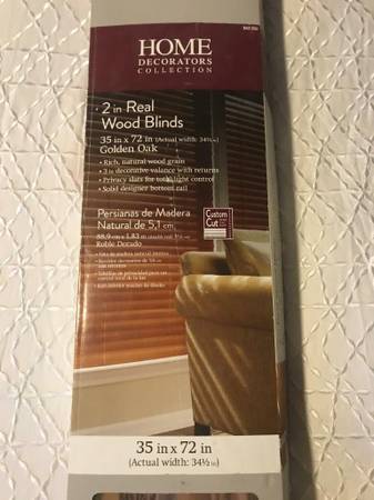 Brand New Home Decorators Collection 2"Inch Premium Real wood Golden Oak Window Blind, Measure:35"Wide x 72"Length, Rich natural wood grain, 25% Larger slats for greater view , 3"Inch Decorative valance with returns, Privacy slats for total light control, Cord tilt for easy adjusting, each Blind is Beautiful Golden Oak wood, supper Deal [$89.00 Retail]