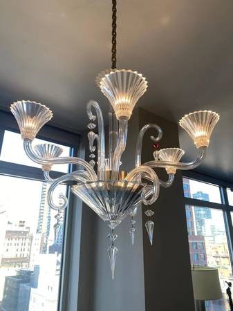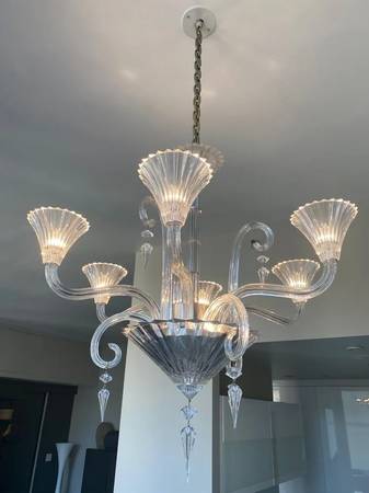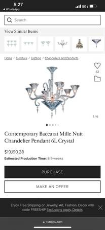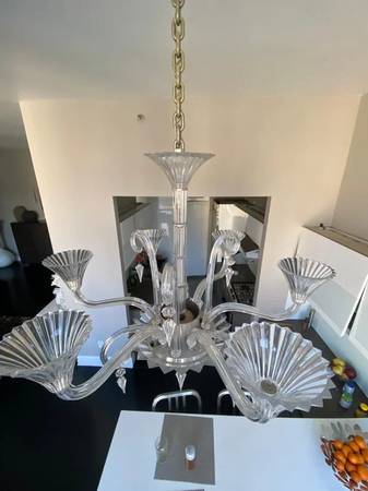 Brighten up your home with this magnificent Baccarat Mille Nuit Baccarat Crystal, Mille Nuits 6 Light Chandelier. Its stunning detailing, glorious style and beautiful detailing will elevate the elegance in your home. The Mille Nuits collection, designed for Baccarat Crystal, by Mathias, is inspired by the poetic and faraway tales of The Thousand and One Arabian Nights. Measuring Length depth and height H: 35.11" W: 33.14" .