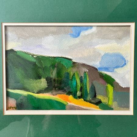 Vintage 1971 oil/watercolor landscape painting on paper by New York artist Alan Singer. He was affiliated with the Cooper Union in New York. His father Arthur was a prolific wildlife painted a la Audubon. More info here: http://singerarts.com/