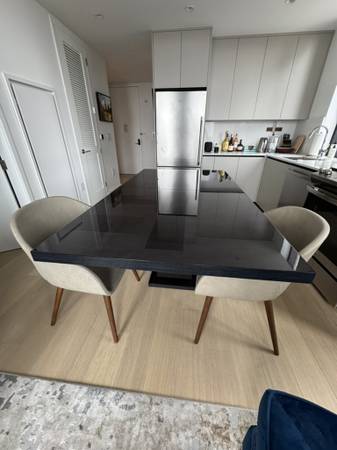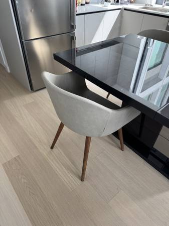 Grey faux leather MCM inspired CB2 dining chair. Limited collaboration with Fred Segal. Tiny chip on back leg of one (photo included).