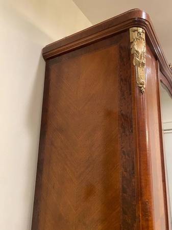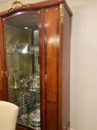 Parisian flair Art Deco curio cabinet. glass shelves gleam behind mirrored side cabinets, offering a perfect platform to showcase your most treasured collectibles. Located in Brooklyn, NY. 87 height...