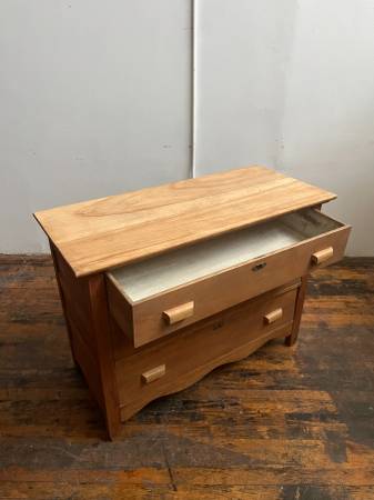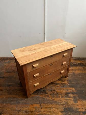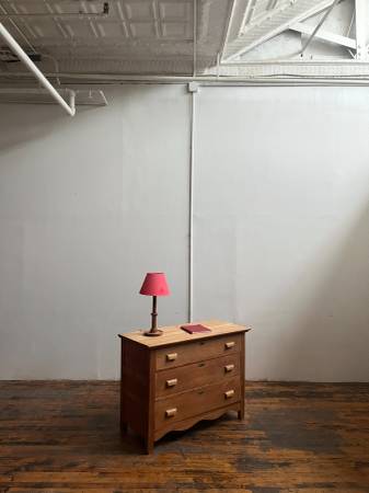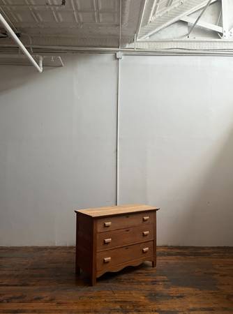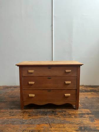 Charming antique oak dresser, stripped of a few layers of paint at some point in its life. Mid sized with three drawers. $380 In good condition, top right handle with a chunk missing out of it, see...