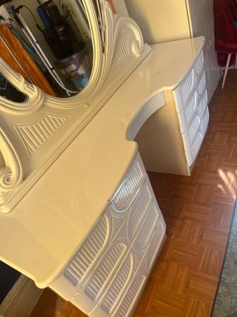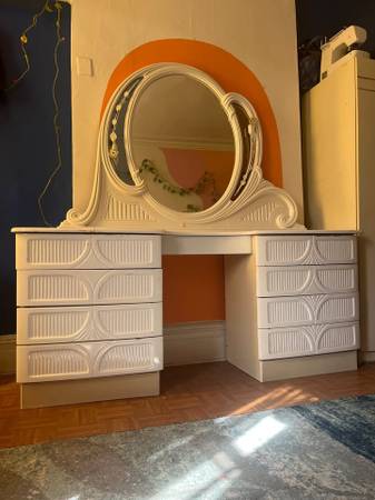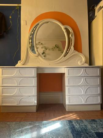 white dresser and vanity