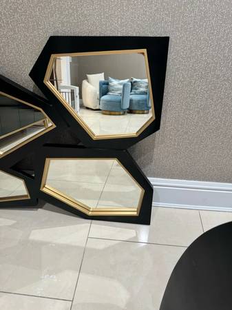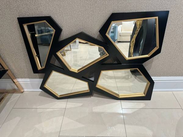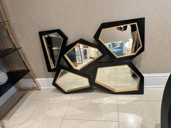Masterpiece of modern design for your home decor needs! sleek lines and a bold asymmetrical shape, this mirror adds depth and style to any space. Its striking black finish exudes sophistication, while its unique design captures attention effortlessly.