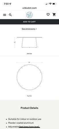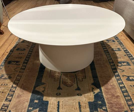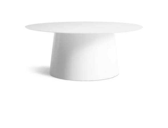 Round white powder-coated metal coffee table from Blu Dot’s Circula collection. Looks great nested with the Circula collection Sleek and lightweight—works for indoor and outdoor use.