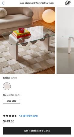 Brand new, never opened, still in box. Goes for $449 before tax and shipping on Urban Outfitters website. You’re saving at least $100 on a brand new designer coffee table. All I ask is that you come...