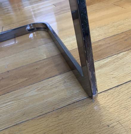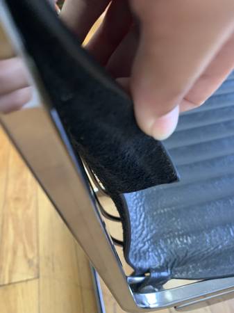 Some minor scuffing on the chrome legs, see images. Leather can be removed via snaps for cleaning if desired.
