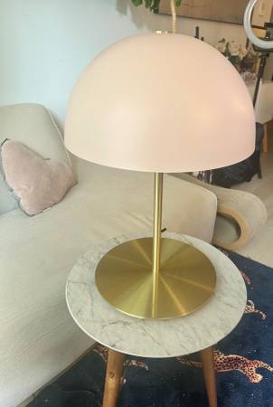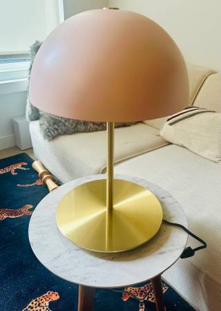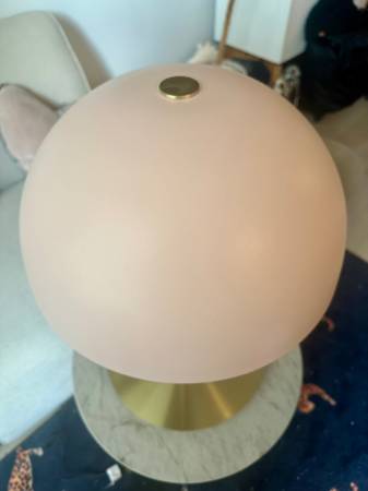 In perfect condition and no longer sold on the CB2 website. Gorgeous table lamp with a pink glass stone and gold base. Dimensions: 13.75" Dia. X 21"H Pick up in doorman building in downtown Brooklyn...