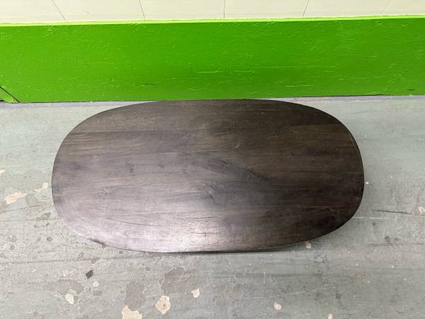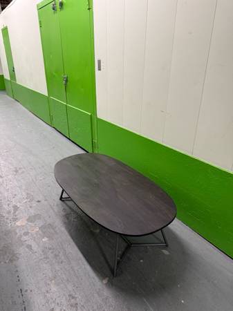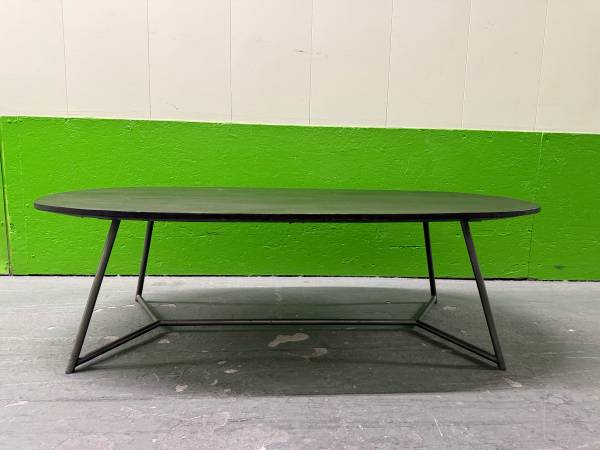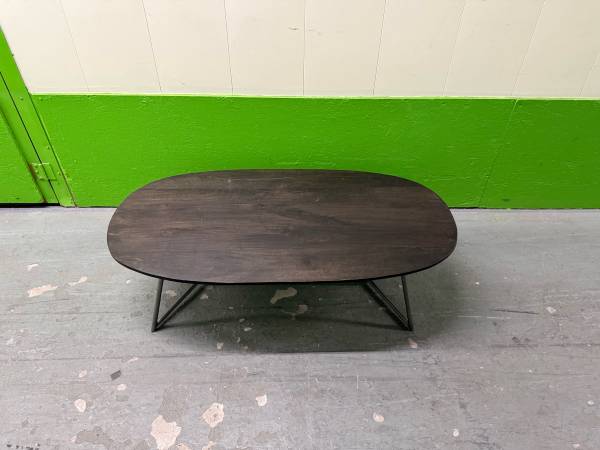 CB2 Modern Oval Coffee Table Woods Metal Legs Good condition with some minor surface stains. 25"D X 50"W X 15"H