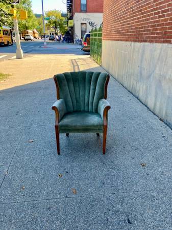 green tufted high backed chair comfortable and well loved coming from a smoke free environment perfect for ur mcm living room