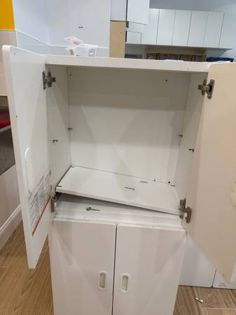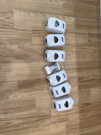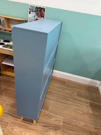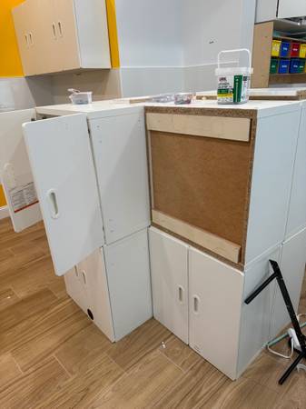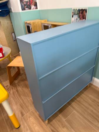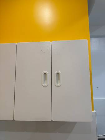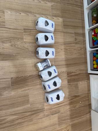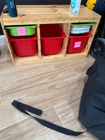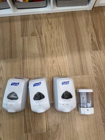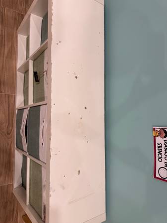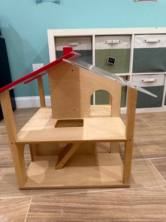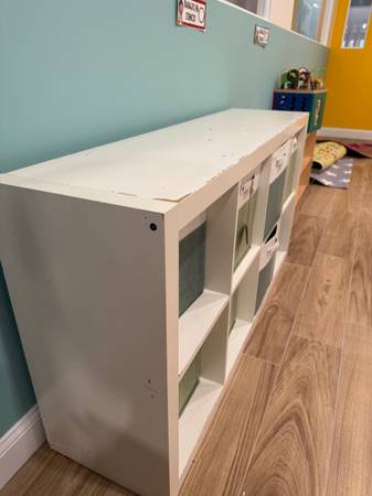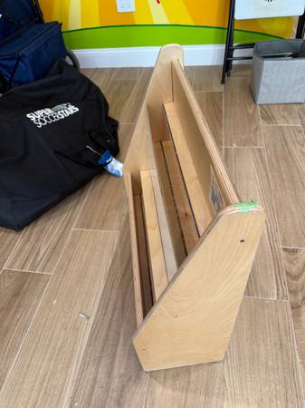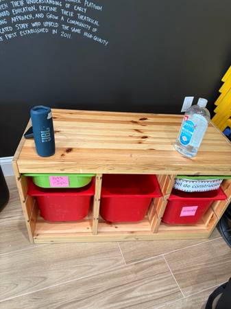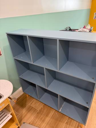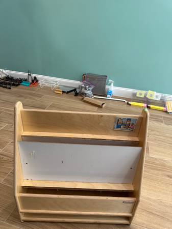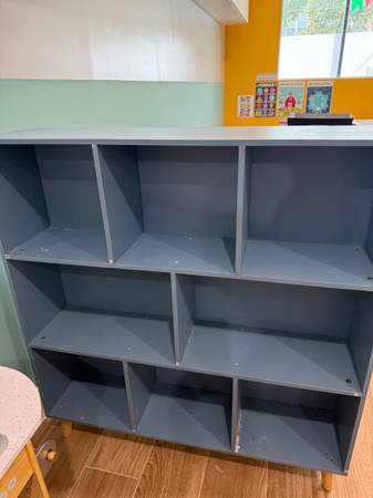 Wall white shelves $25 each Tables $25 IKEA white floor shelf $25 Hand sanitizer dispensers $10 each Little wooden house $20 Little book shelf $10 Squared blue book shelf $30 Closets $25 Wall Mount...