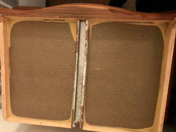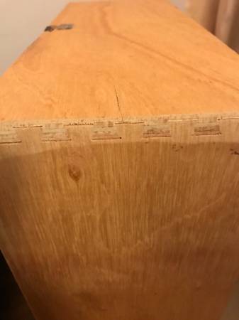 Photos 11 and 12 show the bottom and side of one of the drawers (note the dovetailing). The next two photos are of the sides of the unit and the next two show the back and bottom of the unit.