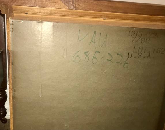 Marked or signed “VAU/ 685-226” and stamped “685-226 7/88 Lot 1623 U.S.A.” on the back (see photo 15) — not sure if that gives a hint of the maker or age. I estimate it is about 30-40 years old, though it may be older.