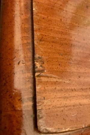 The piece is in Good condition, with some nicks and scratches on top and wear at the edges, as would be expected in a piece this age, but nothing that can’t be handled with a little TLC. (See the next few photos)