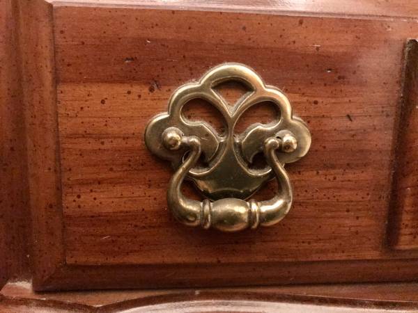 Brass hardware.