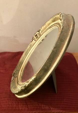 Decorative Antique-Looking Gilded Oval Wall or Standing Tabletop Mirror
