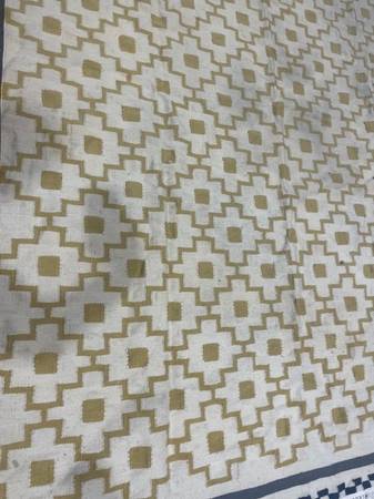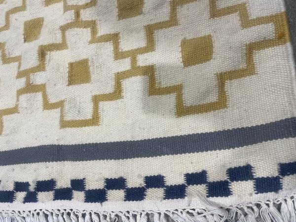 Hand knotted Turkish wool yellow carpet is in good shape. This can be put in the washer and air dried to get it cleaner. This measures 66”w x 96”L.