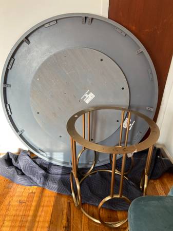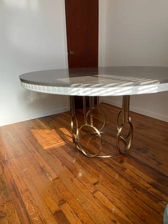 A nice table 55 inch round table Golden metalic pedestal leg Detachable for transport Condition is good pick up from South Brooklyn Call or email with questions