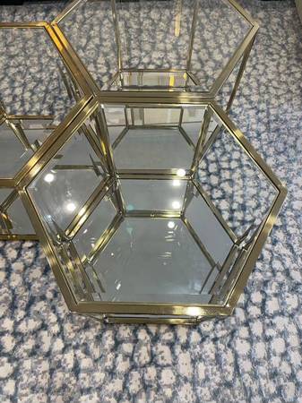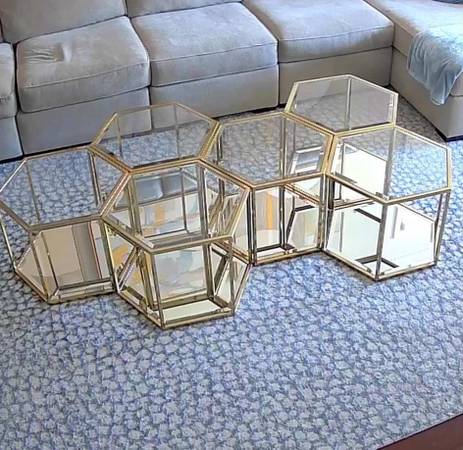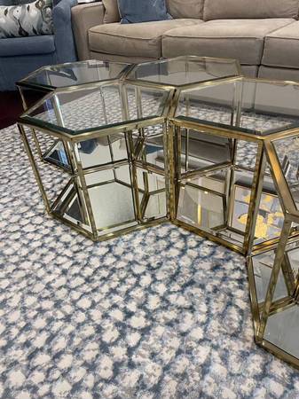 Meridian furniture Brushed Gold End Table Glass Top with Mirrored Base Modular Shape To Connect as Many as Needed Contemporary Design Each Table's Dimensions: 20"" W x 23.5"" D x 23.5"" H Located in...