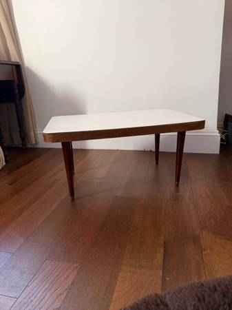 Original Mid Century Modern coffee table. Chic and minimal. Speckled laminate top, walnut body and legs. Legs screw in/out and detach for easy assembly/disassembly. Originally purchased for $250 - selling for a very low rate in hopes it goes to a good home :)