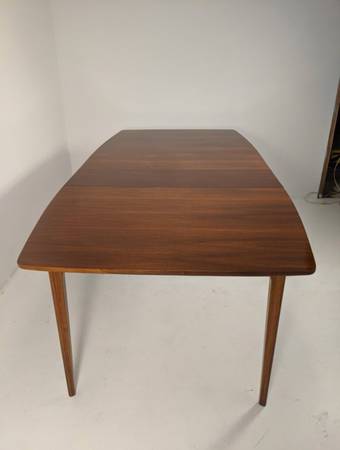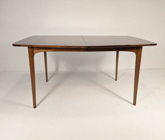 This elegant and spacious vintage walnut dining table from Kent Coffey’s Perspecta collection features tapered legs and a top clad in richly figured walnut veneer. It's in very good vintage...