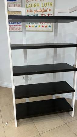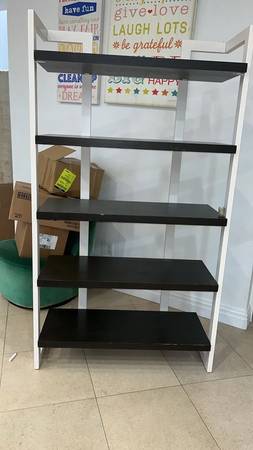 dark wood shelves set against a crisp white frame. The strong contrast gives it a clean Located in Brooklyn 68 inches high 38 inches wide 15 inches deep