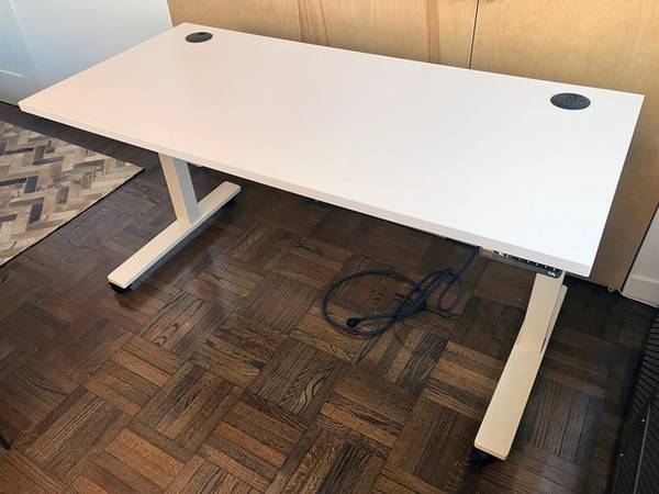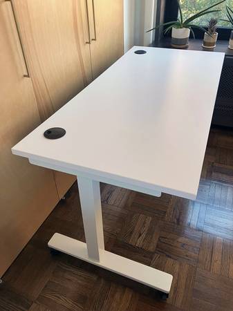 White desktop and base with 4 locking rolling castors