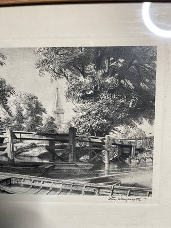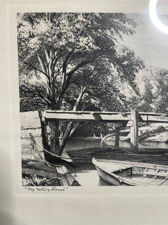 My native land by Stow Wengenroth is in good shape. This is framed and matted. The frame measures 17"w x 13"h.