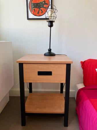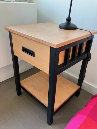 Stylish nightstand with a wood top and drawer, supported by a sleek black metal frame. Includes an open shelf for extra storage. Excellent condition, minimal wear. 💵 Cash or Zelle 📍 Pickup:...