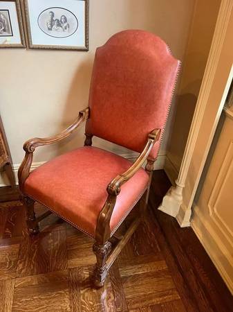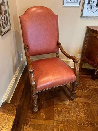 exquisite vintage armchairs. Crafted with unparalleled craftsmanship in the 19th century rich walnut wood with the sophistication of supple leather upholstery Located in Brooklyn, NY. Height- 45...
