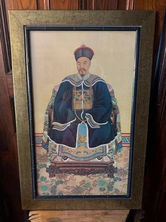 Pair of Vintage Chinese framed Emperor and Empress print portraits are in good shape. These unique pieces will add a wow factor to any space. They measure 26”w x 39.5”h.
