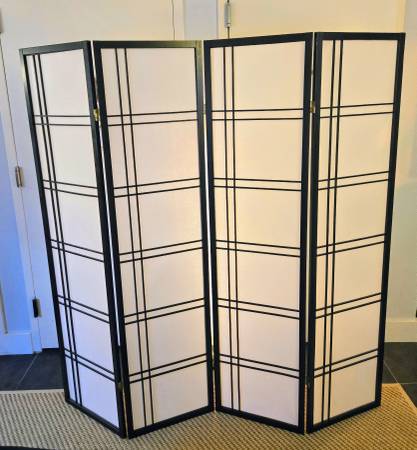 Up for sale is one gently used 4-panel folding room divider made from black finished wood and washi paper. In great condition and ready to be loved in a new space. $50 cash only, pickup in Bushwick.