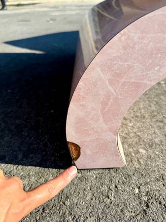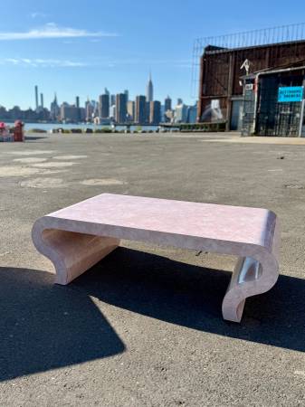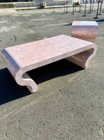 Rare iconic statement for collectors and design lovers. This sculptural two-piece set embodies the bold elegance of 1980s postmodern design: soft blush pink lacquer with a marbled finish, paired with striking waterfall curves.