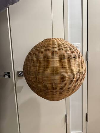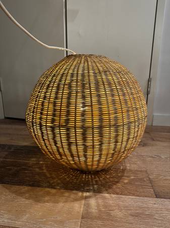 In like new condition, no signs of wear, breakage etc. Globe is large, measure approximately 18 x 18 inches. Long cord for hanging.