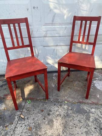 2 Red Painted Solid Wood Chairs - DELIVERY AVAILABLE - furniture -...