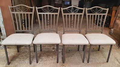 some of the chairs are in DISTRESSED STYLE.... perhaps for a movie shoot or play or photography prop