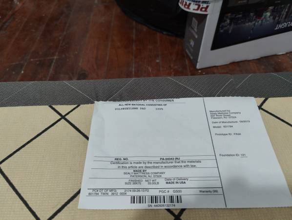 Slightly used Sealy boxspring. Good construction and will give good support to your mattress and extra height to your bed.
