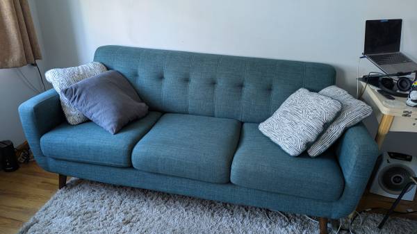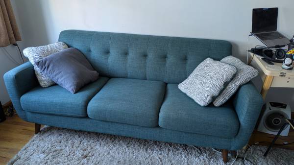 Bob's Discount Furniture Bettie sofa. Pickup Only Teal color / 80 inches (originally $499 plus tax) Matching pillows included! Gently used, 3 years old. This is an amazing couch, very comfortable...