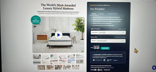 Moving and upgrading to a queen. Like new winkbed twin xl mattress. Luxury firm. Bought for over $1000 in January from SleePare, but lowered price bc most people don’t buy used mattresses and I’d like it gone asap! Coming from a cat household so may have some cat hairs but I used it with a mattress protector + fitted sheet and did clean it as much as possible before storing it in a room.